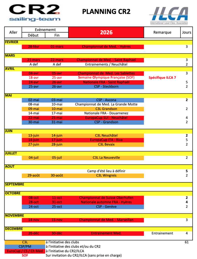 Calendrier CR2 Calendrier 2025/26 Optimist –> Lien Calendrier 2025/26 29er –> Lien (mot de passe: 29erCR2) Calendrier 2025/26 ILCA